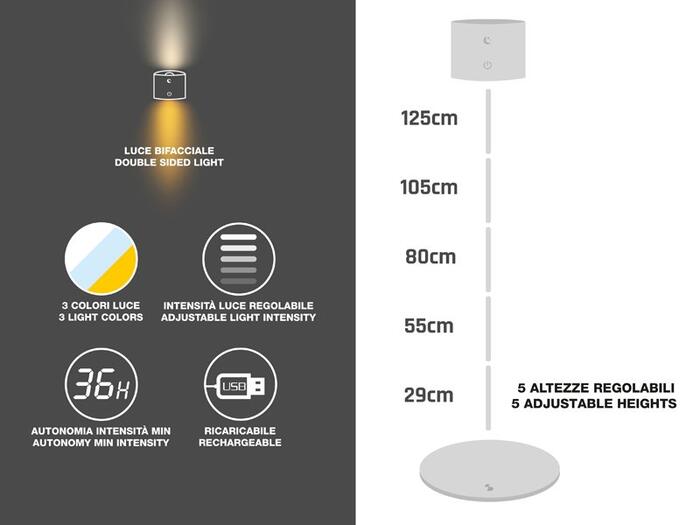 Pieskāriena slēdzis: viegli izvēlieties siltu, aukstu vai dabisku gaismu Regulējams spilgtums: turiet nospiestu barošanas pogu, lai pielāgotu gaismas intensitāti Iekļauts sienas stiprinājuma piederums: Vienkārša uzstādīšana un optimāla orientēšana Nakts režīms: maigs apgaismojums ar regulējamu spilgtumu Komplektā iekļauts USB uzlādes kabelis: ērts un videi draudzīgs
