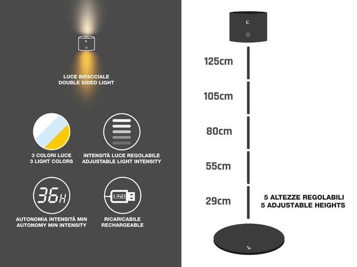 Pieskāriena slēdzis: viegli izvēlieties siltu, aukstu vai dabisku gaismu Regulējams spilgtums: turiet nospiestu barošanas pogu, lai pielāgotu gaismas intensitāti Iekļauts sienas stiprinājuma piederums: Vienkārša uzstādīšana un optimāla orientēšana Nakts režīms: maigs apgaismojums ar regulējamu spilgtumu Komplektā iekļauts USB uzlādes kabelis: ērts un videi draudzīgs