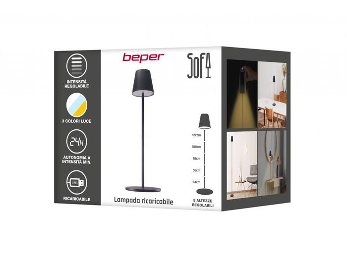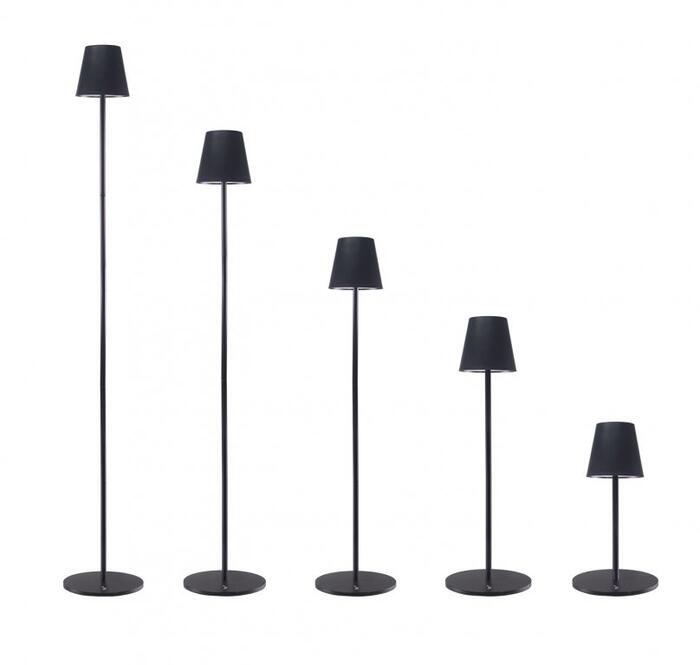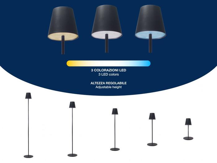 Ar vienkāršu pieskārienu varat izvēlēties starp siltu, aukstu vai dabisku gaismu, kā arī palielināt vai samazināt gaismas intensitāti, turot nospiestu strāvas pogu. Augstums ir arī regulējams: ar 5 kāta sekcijām to var novietot katrā mājas stūrī. Lampa ir piemērota arī galdu un/vai mēbeļu stūru apgaismošanai. Komplektācijā iekļauts USB uzlādes kabelis. Tehniskie dati Jauda: 2,3W Izmērs: 18 x 18 x 122 cm Materiāls: dzelzs un akrils ar matētu laku Krāsa: melna