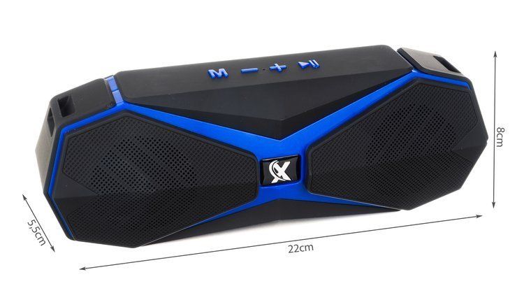 krāsa: melna un zila Bluetooth: jā interfeiss: USB, MicroUSB microSD/TF karšu lasītājs atskaņošanas formāts: mp3 barošanas bankas funkcija: jā uzlādes skaļrunis / barošanas bloks: USB / microUSB kabelis USB - microUSB kabeļa garums: ~ 50cm akumulatora ietilpība: 1200 mAh frekvenču diapazons: 2.40G-2.480GHZ izejas jauda: 8W atskaņošanas laiks: 2-15h (atkarībā no skaļuma un izvēlētās funkcijas) Bluetooth efektīvais attālums: 10 m materiāls: ABS plastmasa izmēri: 5,5 / 22 / 8cm svars: 463 g svars iepakojumā: 568 g IEKĻAUTA skaļrunis USB kabelis - Micro USB regulējama plecu siksna 53-100cm Pārdevēja garantija: 24 mēneši