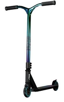 Zviedru firmas STIGA Sports AB TRICK skūteris HOOD . Alumīnija / metāla rāmis; Bremzes; PU riteņi 100 mm; Hromēti gultņi ABEC 9 gludākai un ātrākai braukšanai; trīs skrūvju apskava; augstums 78 cm, polsterēti rokturi. Lietotāja svars:max100kg. Vecums 7+. Krāsa: neon