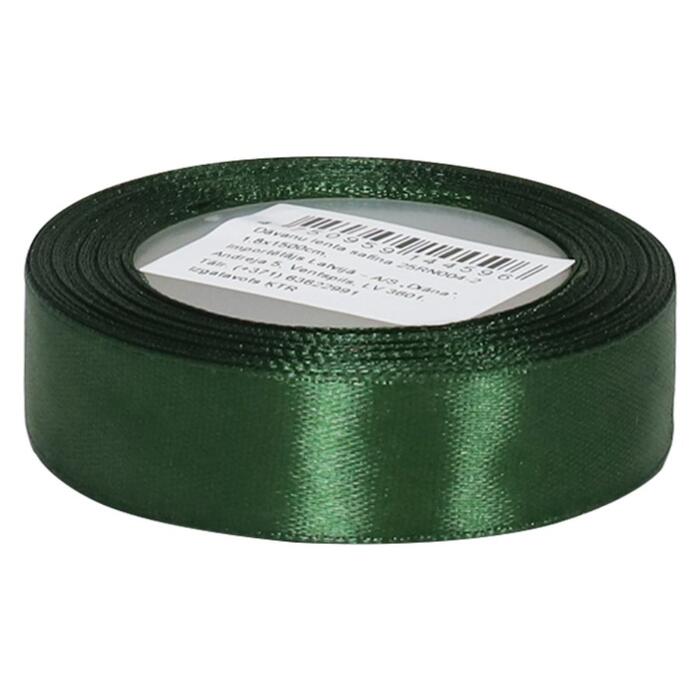 Tumši zaļa satīna dāvanu lenta ir ideāli piemērota dāvanu dekorēšanai un dažādu svētku noformējuma radīšanai. Ar savu eleganto izskatu un kvalitatīvo materiālu tā piešķir īpašu šarmu un eleganci jebkurai dāvanai vai dekoram. Lentas platums 1.8 cm, kopējais garums 15 m.