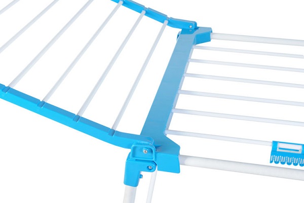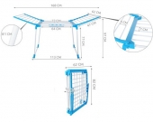 stabilas, plašas kājas, lai palielinātu stabilitāti Izvērsta žāvētāja izmēri (platums/ garums / augstums): 168x62x97 cm Saliekama žāvētāja izmēri (platums / dziļums / augstums): 62x16x82 cm maksimālā slodze: līdz 60 kg cauruļu skaits: 22 caurules + papildus caurule ar 26 āķiem svars ar iepakojumu: ~ 5 kg Pārdevēja garantija: 24 mēneši
