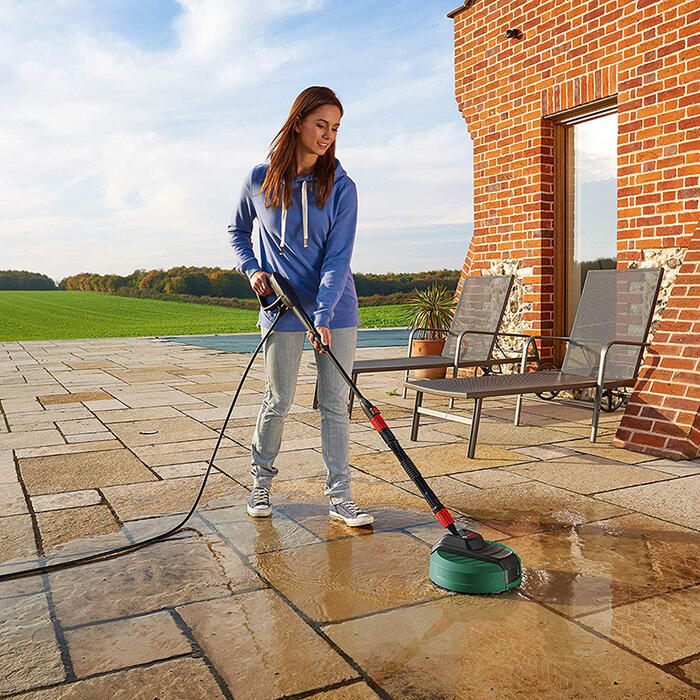 Ātrdarbīga terašu un piebrauktuvju tīrīšana Ideāli piemērots lielu pagalmu un piebraucamo ceļu tīrīšanai Šarnīrsavienojums un papildu izsmidzinātājs atvieglo manevrēšanu Jaunas, uzlabotas sprauslas īpaši efektīvai tīrīšanai Saderīgs ar EasyAquatak 100 LL/110/120, UniversalAquatak, AdvancedAquatak 140, AQT 33-10, AQT 33-11, AQT 35-12, AQT 37-13, AQT 40-13, AQT 42-13, AQT 45-14 X Lielo virsmu tīrītājs ir paredzēts nevainojami tīru terašu un piebrauktuvju uzturēšanai Jaudīgā lielo terašu tīrīšanas galviņa ir nesaudzīga pret netīrumiem un taupa laiku. Tā bez piepūles pārvietojas pār dažādām virsmām, ātri un efektīvi tīrot bez nekādas šļakstīšanās uz ārpusi. AquaSurf 280 terašu tīrītājs efektīvi tīra lielas piebrauktuves un terases. Tas bez piepūles pārvietojas pār zemi, noņemot aļģes, ķērpjus un sūnas vienā acumirklī. 280 mm platais diametrs padara to ārkārtīgi lietderīgu arī laika taupīšanas ziņā, apstrādājot lielākus laukumus. Tā suku apmale nepieļauj šļakstīšanos uz ārpusi, tādējādi uzturot apkārtējo platību sausu, savukārt uzlabotie uzgaļi sekmē tīrāko rezultātu panākšanu. Tas viegli pārvietojas pār akmeni, mūri un segumu, savukārt tā fiksējošais mehānisms gādā par izsmidzinātāja stingrību, tiekot galā ar prasīgākajiem tīrīšanas darbiem. 280 mm tīrīšanas galviņa maksimālai efektivitātei Ātri notīra lielas terases ar akmens, ķieģeļu mūrējumu un seguma flīzēm. Pārdevēja garantija: 24 mēneši