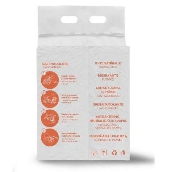 Neto svars: 6 l / 2,5 kg, 2,0 mm granulu kaķu pakaiši izgatavoti no pārtikas izejvielām, izmantojot progresīvas tehnoloģijas. Tie nerada sekundāro piesārņojumu un var tikt vienkārši noskaloti tualetes podā. Paredzēti: Dažāda vecuma un dažādu šķirņu kaķiem, piemēroti arī jutīgiem kaķiem, droši, neizraisa alerģiju. Salīpoši (aglomerējoši) kaķu pakaiši, kas lieliski neitralizē smaku, ātrāk uzsūc ūdeni un nav toksiski videi. Priekšrocības: ātra un spēcīga uzsūkšana, ātra absorbcija, 100 % dabiski, droši un veselīgi, bez putekļiem, ilgtermiņa smaku kontrolei, noskalojami tualetes podā, nepielīp pie kaķa pēdiņām. Lietošana: Ieberiet “Tofu” pakaišus tīrā kaķa tualetē, 2–4 cm biezā kārtā. Izmantotos “Tofu” pakaišus izņemiet / nomainiet kaķa tualetes kastē katru dienu vai pēc vajadzības. Izmantotos “TOFU” pakaišus varat noskalot tualetes podā. Izcelsmes valsts: Ķīna. Pārdevēja garantija: 24 mēneši