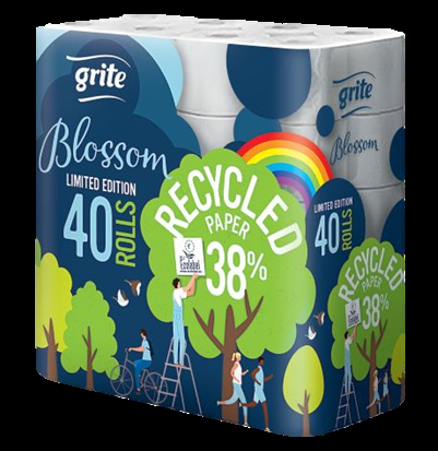 Tualetes papīrs Grite Blossom 40 ruļļi, 3 slāņu, 135 loksnes, 16.2m (400-10907)