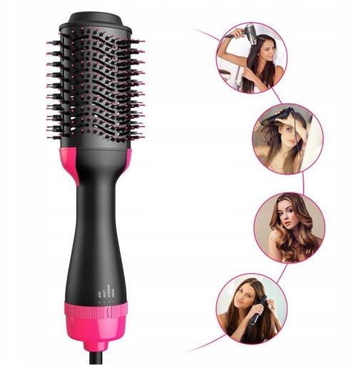 4in1: fēns, lokšķēres, taisnotājs un ķemme; 3 sildīšanas līmeņi ar dažādiem pūšanas ātrumiem; jonizācijas funkcija novērš statisko elektrību un matu pārklājuma bojājumus; piemērots visiem matu tipiem; sausu un mitru matu ieveidošanai; galva pārklāta ar keramikas pārklājumu; grozāmais kabeļa gals ērtākai ierīces lietošanai; galva klāta ar neilona un saru ķemmi; inovatīva gaisa plūsma, kas nodrošina vienmērīgu siltuma sadali; COOL TIP birstes galvas gals, lai novērstu apdegumus; ergonomisks dizains lietošanas komfortam; liela jauda 1000W. Pārdevēja garantija: 24 mēneši