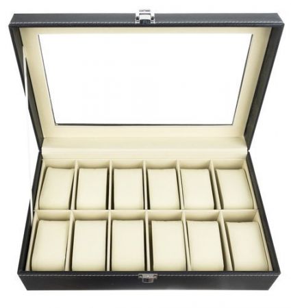 Koferī ir 12 nodalījumi, kastītes melna krāsa un baltas šuves, piešķir eleganci un stilu. Korpusa vāks ir caurspīdīgs, tāpēc kastīti var izmantot ne tikai uzglabāšanai, bet arī satura prezentēšanai.