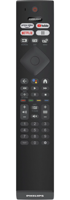 Uzlabojiet savus atpūtas mirkļus ar The One. Šis 4K Ambilight TV ļauj iedziļināties katrā seriālā, filmā un spēlē! Iegūstiet aizraujošu attēla kvalitāti, visas nepieciešamās straumēšanas lietotnes un statīvu, kur ērti novietot Soundbar skaļruni VISPĀRĪGA INFORMĀCIJA Lielisks attēls. Elastīga skaņa. Iepakots atbildīgi. • Īpaši ass attēls. Dinamiska skatīšanās. • Slaids televizors. Radīts nākotnei. • Pievilcīgs dizains. Statīva augstums pielāgojas Soundbar skaļrunim. • Lieliska TV skaņa. Un viegli pievienot Soundbar vai citus skaļruņus • Philips bezvadu mājas sistēma ar DTS Play-Fi Gatavs jūsu iecienītajam saturam. • Patīk spēles. 60 Hz, VRR, ļoti zema ievades aizkave. • Balss vadība. Google asistents. Darbojas ar Alexa • 60 Hz vietējā atsvaidzes intensitāte. 120 Hz Ultra Motion Clarity. • Izklaide, kas jums patīk, ar nelielu Google palīdzību. The One. 4K LED Ambilight TV, kuram ir viss nepieciešamais. • The One ar Dolby Vision un Dolby Atmos. • The One ar brīnišķīgu attēlu. Philips P5 Picture dzinis. • Ar imersīvu Ambilight. IZCELTIE PRODUKTI Ar Ambilight. Ambilight televizori ir vienīgie televizori ar LED apgaismojumu aiz ekrāna, kas reaģē uz to, ko skatāties, ieskaujot jūs krāsainas gaismas fonā. Tas maina visu: televizors šķiet lielāks, un jūs varēsiet iedziļināties savos iecienītajos seriālos, filmās un spēlēs vēl vairāk. P5 Perfect Picture dzinis Philips P5 dzinis nodrošina perfekti dzidrus attēlus, kas ir tikpat izcili, kā jūsu iecienītais saturs. Ievērojami lielāks detalizācijas dziļums. Izteiksmīgas krāsas un dabiski ādas toņi. Nepārspējami dzidrais kontrasts ļauj jums izbaudīt ikvienu attēla detaļu. Videoattēls ir nevainojami vienmērīgs. Dolby Vision un Dolby Atmos Pateicoties Dolby Vision un Dolby Atmos, jūsu filmas, seriāli un spēles izskatās un izklausās satriecoši. Ieraugiet attēlu tādu, kādu režisors to vēlējās parādīt. Aizmirstiet par sabojātām ainām, kad ekrāns ir pārāk tumšs, lai saprastu notiekošo. Skaidri dzirdiet ikvienu vārdu. Izbaudiet skaņas efektus tā, it kā darbība notiktu jums visapkārt. Īpaši ass attēls Lai ko jūs skatītos, jūs izbaudīsiet spilgtu, īpaši asu attēlu ar dzīvīgām krāsām. Turklāt šis 4K UHD Ambilight TV ir saderīgs ar visiem galvenajiem HDR formātiem, tāpēc saskatīsiet sīkākās detaļas pat tumšās un gaišās zonās, straumējot HDR saturu. Atbildīgs iepakojums Vai meklējat televizoru, kas iederētos jūsu istabā? Šī Ambilight televizora ekrāns, kam praktiski nav apmales, iederas gandrīz jebkurā interjerā. Regulējama augstuma statīvs ir lieliski piemērots Soundbar skaļruņiem. Mūsu iepakojumā ir izmantots FSC sertificēts pārstrādāts kartons, un informatīvie materiāli ir izdrukāti uz pārstrādāta papīra. DTS Play-Fi Lieliska, skaidra televizora skaņa. Ja vēlaties vairāk, Philips Wireless Home System ar DTS Play-Fi ļauj dažu sekunžu laikā izveidot savienojumu ar saderīgiem Soundbar skaļruņiem un bezvadu skaļruņiem. Jūs pat varat izveidot mājas kinozāles telpiskās skaņas sistēmu, izmantojot savu televizoru kā centrālo skaļruni. Patīk spēles Vai nevarat sagaidīt, kad varēsiet spēlēt? Jūsu 60 Hz Ambilight TV ar HDMI 2.1 atbalsta ātru spēlēšanu, un tās Ultra Motion Clarity režīms nodrošina asāku, vienmērīgāku attēlu. Ieslēdziet savu konsoli, un automātiski aktivizēsies ļoti zemas ievades aizkaves iestatījums, bet Ambilight spēļu režīms visu padarīs vēl aizraujošāku. Google TV™ Ko jūs vēlaties skatīties? Google TV apvieno filmas, šovus un citus raidījumus no jūsu lietotnēm un abonementiem un sakārto tos. Jūs saņemsiet ieteikumus, pamatojoties uz to, kas jums patīk, un varat pat izmantot Google TV lietotni savā tālrunī, lai pielāgotu savu skatīšanās sarakstu, lai kur arī jūs atrastos. MI balss vadība Jūs varat izvēlēties balss asistentus. Tālvadības pultī nospiediet Google Assistant pogu un izmantojiet balsi, lai meklētu filmas un raidījumus, iegūtu ieteikumus, pārvaldītu viedas mājas ierīces un paveiktu daudz ko citu. Varat arī lūgt asistentam Alexa pārvaldīt televizoru, izmantojot ierīces, kurās darbojas Alexa SPECIFIKĀCIJAS Ambilight Ambilight funkcijas: Pielāgošanās sienas krāsai, Lounge režīms, Spēļu režīms, Ambilight Music, AmbiWakeup, AmbiSleep, darbojas ar Philips bezvadu mājas skaļruņiem, Ambilight palaides animācija Ambilight versija: Trīspusēja Attēls/displejs Ekrāna diagonāles garums (collas): 55 colla Ekrāna diagonāles garums (metriskajā sistēmā): 139 cm Displejs: 4K Ultra HD LED Paneļa izšķirtspēja: 3840 x 2160 Vietējā atsvaidzes intensitāte: 60 Hz Attēlu programma: P5 Perfect Picture dzinis Attēla uzlabošana: Dolby Vision, HDR10+, Micro Dimming Pro, Natural Motion, Plaša krāsu gamma 90% DCI/P3, Gatavs lietošanai ar CalMAN, HLG (Hybrid Log Gamma) Displeja ievades izšķirtspēja Izšķirtspēja – atsvaidzes intensitāte: 576p – 50 Hz, 640 x 480 – 60 Hz, 720p – 50 Hz, 60 Hz, 1920 x 1080p – 24 Hz, 25 Hz, 30 Hz, , 50 Hz, 60 Hz, 2560 x 1440 – 60 Hz, 3840 x 2160p – 24 Hz, 25 Hz, 30 Hz, , 50 Hz, 60 Hz Uztvērējs/uztveršana/pārraide Digitālā TV: DVB-T/T2/T2-HD/C/S/S2 Video atskaņošana: PAL, SECAM HEVC atbalsts Android TV OS: Google TV Iepriekš instalētās aplikācijas: Google Play Movies*, Google Search, YouTube, Netflix, Apple TV, BBC iPlayer, Amazon Prime Video, Disney+, YouTube Music, Fitnesa lietotne, Ambilight Aurora Atmiņas izmērs (zibatmiņa): 16 GB Spēļu mākonis: Geforce Now Smart TV funkcijas Interaktīvā televīzija: HbbTV Tālvadības pults: ar balss vadību Balss asistents: Iebūvēta Google Assistant funkcija, Tālvadība ar mikrofonu., Strādā ar Alexa Multivides lietojumprogrammas Video atskaņošanas formāti: Konteineri: AVI, MKV, H264/MPEG-4 AVC, MPEG-1, MPEG-2,