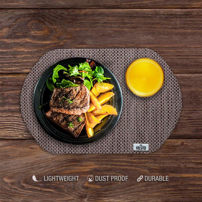 IDEĀLS KOMPLEKTS: VILSTO galda paliktņu komplekts (43 x 28 cm). Dekoratīvie, praktiskie paliktņi lieliski iederēsies jebkuras virtuves interjerā. Paliktņi ir neslīdoši, viegli, vairākkārt lietojami un izturīgi pret nodilumiem. Pārdevēja garantija: 24 mēneši
