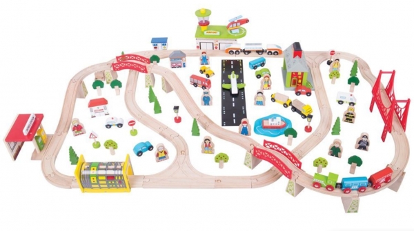 Материал: дерево Набор включает в себя 125 элемента. Все элементы железной дороги выполнены из натурального дерева и окрашены высококачественными нетоксичными красками в яркие цвета. В комплекте имеются аэропорт, станция, заправка, вокзал, деревья, домики, машинки, мосты, паровозик с красочными вагончиками и фигурки людей. Игрушка станет великолепным помощником малышу в развитии мелкой моторики, координации и ловкости. В дальнейшем, когда ребенок подрастет, вы можете добавить к железной дороге новые интересные элементы. Гарантия продавца: 24 месяца
