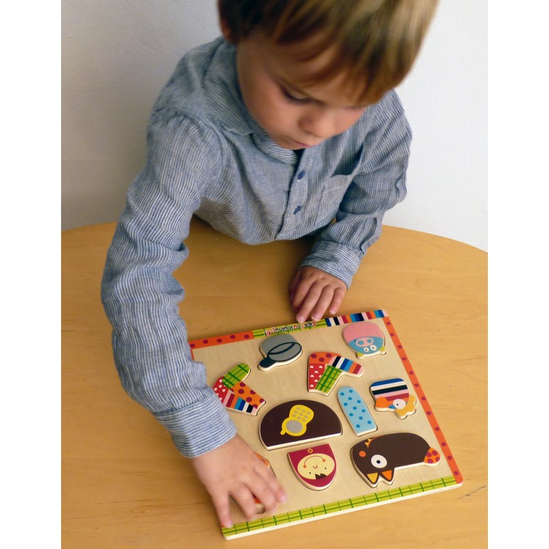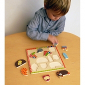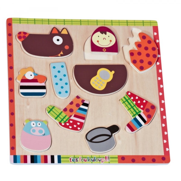 Ваш малыш может сам собрать себе волчонка из ярких деревянных пазлов.