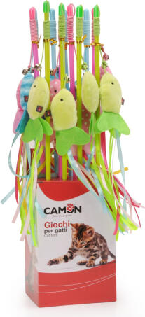 Camon Игрушка для кошек - палочка с рыбкой и лентами 48см (AG0381)