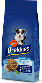 BREKKIES DOG JUNIOR полноценный сухой корм для щенков с курицей, овощами и крупами. В первый год жизни вашему щенку необходим Brekkies Junior, который помогает щенку расти и развиваться благодаря витаминам, минералам и белкам. СОСТАВ: Злаки (12% риса), мясо и побочные продукты животного происхождения (4% обезвоженного куриного белка), экстракты растительного белка, побочные продукты растительного происхождения (2,5% свекольного жома), масла и жиры, минералы, овощи (1% обезвоженного гороха, эквивалент 4 свежих горошка, 0,05% обезвоженной моркови, что эквивалентно 0,4% свежей моркови). ДОБАВКИ: Пищевые добавки: Витамин A 23110 МЕ / кг, витамин D3 1540 МЕ / кг, витамин E 82 мг / кг, моногидрат сульфата железа 237 мг / кг (Fe: 78 мг), йодид калия 1,7 мг (I: 1,3 мг), пентагидрат сульфата меди 30 мг / кг (Cu: 8 мг), моногидрат сульфата марганца 112 мг / кг (Mn: 36,5 мг), моногидрат сульфата цинка 219 мг / кг) (Zn: 80 мг), селенит натрия 0,22 мг / кг) (Se: 0,1 мг). Зоотехнические добавки: сепиолит 300 мг. Содержит антиоксиданты и красители *. * Без искусственных красителей. АНАЛИТИЧЕСКИЕ ИНГРЕДИЕНТЫ: сырой белок 27%, сырой жир 16%, сырая клетчатка 2,2%, сырая зола 7,5%, Омега 0,32%, Омега 6 2,7%. ДОЗИРОВКА КОРМЛЕНИЯ - смотреть таблицу на упаковке.