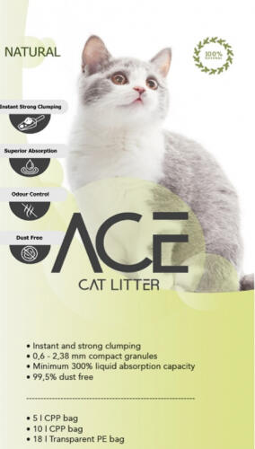 ACE Natural CAT LITTER 10 LT - цементирующийся наполнитель для кошачьего туалета, 10 л (ACE-011)