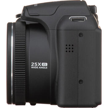 Эффективные мегапиксели: 16,15 МП Фокусное расстояние: 24–600 мм (эквивалентно 35 мм) Интенсивность света: F3,7 (широкоугольный) — F6,2 (телефото) Конструкция линзы: 11 групп, 12 элементов Оптический зум: 25x Диапазон фокусировки: Макро широкий угол: 3 см Нормальный широкий угол: 60 см Телефото: 250 см Система автофокуса: TTL Стабилизатор: оптическая стабилизация изображения (OIS) Цифровой зум: 4-кратный (комбинированный оптический + цифровой зум: 30-кратный) Максимальное разрешение: 4608 x 3456 пикселей (4:3) / 4608 x 3072 пикселей (16:9) Максимальное разрешение видео: 1920 x 1080 пикселей, Full HD Дисплей: 3-дюймовый ЖК-дисплей (230 000 пикселей) Режимы съемки: Автоматический Программа автоматическая P Временной код S Приоритет диафрагмы А Ручной режим М Панорама Режим серийного изображения Фильм SCN — режимы сцены Удаление красных глаз, размытие, осветление глаз Панорамный: от 0 до 180 градусов Точки автофокусировки: одиночная автофокусировка, множественная автофокусировка (9-точечная TTL), отслеживание объекта, распознавание лиц Измерение: Автоматизация с искусственным интеллектом AiAE Центрально-взвешенная Пятно (в центре) AE для лица Компенсация экспозиции: +/- 2 EV с шагом 1/3 Скорость затвора: 1/2000 - 30 секунд Баланс белого: Авто, Дневной свет, Облачно, Люминесцентное освещение, Лампа накаливания, Ручной 1900–10 000 K Вспышка: встроенная выдвижная, ручная Режимы вспышки: автоматический, подавление эффекта красных глаз, заполняющая вспышка, долгосрочная синхронизация, подавление эффекта красных глаз + долгосрочная синхронизация Хранилище: карта SD / SDHC (поддержка до 32 ГБ / класс 4 или выше) Поддержка: Eye-Fi, PictBridge, поддержка ExifPrint Соединения: AV-выход Микро-USB 2.0 HDMI Тип-D Источник питания: 4 щелочные батареи AA (в комплекте) или 4 батарейки AA NiMH (не входят в комплект) Срок службы батареи: до 280 снимков с щелочными батареями, до 500 снимков с батареями NiMH Размеры: 113,6 х 77,7 х 69,7 мм Вес: прибл. 336 г (без батареек)