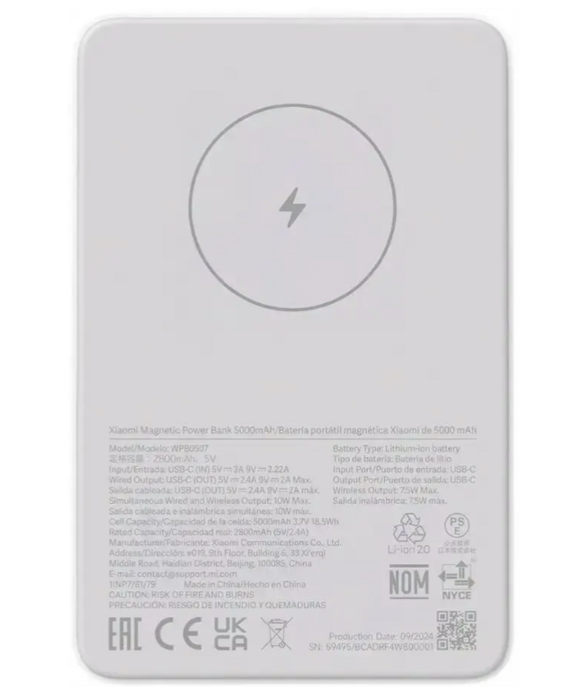 Xiaomi BHR9303GL компактный и лёгкий портативный аккумулятор с ёмкостью 5000 мАч. Оснащён системой Mi Magnetic, которая позволяет легко подключать совместимые устройства, а также портом USB-C для быстрой зарядки.