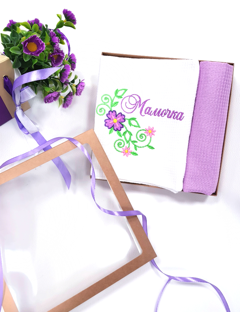 В комплекте: вафельное полотенце 45х80 см с вышивкой, вафельное полотенце 45х80 см без вышивки