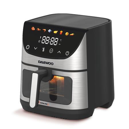 Аэрогриль Daewoo, 1600 Вт, LED-дисплей, 6,5 л, таймер, 8 предустановленных программ, регулируемая температура 80–200°C, чёрный, DAF 1600IX. Регулируемая температура от 80°C до 200°C, вместительная чаша объёмом 6,5 л и мощность 1600 Вт. Забудьте о догадках с температурой и временем приготовления! Аэрогриль Daewoo оснащён 8 предустановленными программами приготовления, которые активируются одним касанием, делая процесс готовки быстрым и удобным. Эти интеллектуальные настройки оптимизированы для получения идеальных результатов при приготовлении популярных блюд, таких как мясо, картофель фри, курица, замороженные продукты, рыба, пицца, бургеры и овощи, с управлением через цифровой LED-дисплей.