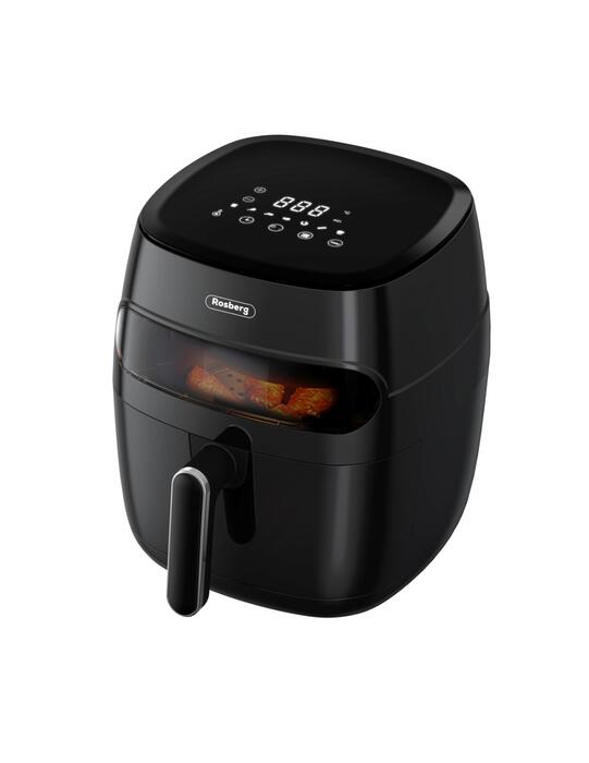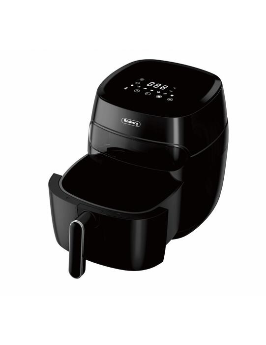 Аэрогриль Rosberg 55R51980CA, 1350 Вт, 5,2 л, LED-дисплей, таймер, до 200°C, черный. Регулируемая температура 80℃~200℃. LED-дисплей. Прозрачное окно. Таймер до 60 минут. 5,2 л масляный контейнер с антипригарным покрытием. Съемная решетка и контейнер, можно мыть в посудомоечной машине. Защита от перегрева. Нескользящие ножки. Ручка остаётся холодной. Нагревательный элемент SS304. Без неприятного запаха. Питание: 220-240В~, 50-60Гц. Мощность: 1200 Вт.