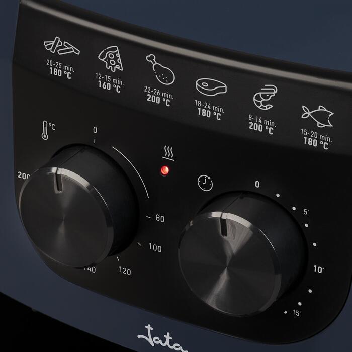 Емкость: 4,5 л В комплект входит 100 штук перфорированной пергаментной бумаги шириной 20 см. 2 независимых датчика: таймер/температура Простота в использовании Корзина с антипригарным покрытием и ручкой. Диаметр корзины: 21,5 см. Высота: 11 см Регулируемый контроль температуры: макс. 200°C Защита от перегрева 30-минутный таймер Длина кабеля: 1 метр Без BPA Мощность: 1500 Вт Напряжение: 230 В