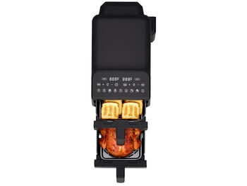 Благодаря двум независимым камерам общей вместимостью 10 литров вы можете готовить два разных блюда одновременно – быстро, полезно и без лишнего жира. Это идеальное решение для тех, кто ценит современные технологии на кухне, экономию времени и простоту использования.