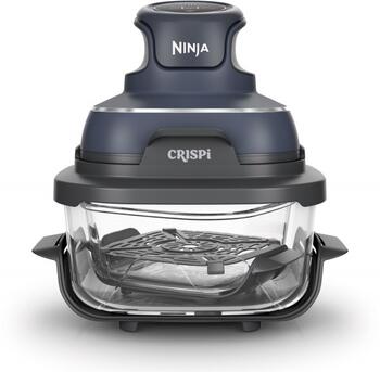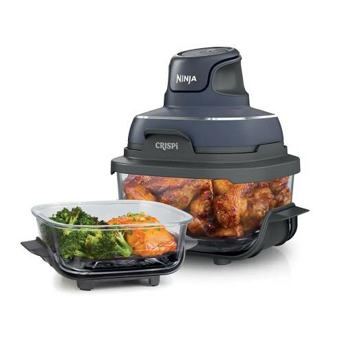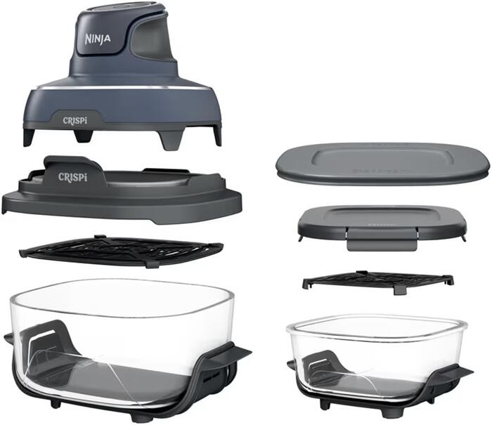 Ninja CRISPI 4-in-1 ir moderns un kompakts karstā gaisa fritieris ar stikla trauku, kas apvieno četras funkcijas vienā ierīcē – cepšana, sildīšana, kraukšķināšana un īpaši kraukšķīga apstrāde augstā temperatūrā. Tas ir ideāls risinājums mazām virtuvēm, studentiem vai ceļošanai, pateicoties tā pārnēsājamam dizainam un stikla traukiem, kurus var izmantot ne tikai gatavošanai, bet arī ēdiena uzglabāšanai un uzsildīšanai. Ierīcei ir divi borosilikāta stikla trauki, kas ir izturīgi pret temperatūras svārstībām un piemēroti lietošanai saldētavā, mikroviļņu krāsnī un trauku mazgājamajā mašīnā. Pateicoties caurspīdīgajam dizainam, Jūs vienmēr redzēsiet, kā ēdiens gatavojas. Visi komponenti ērti saliekami kopā, ietaupot vietu glabāšanai.