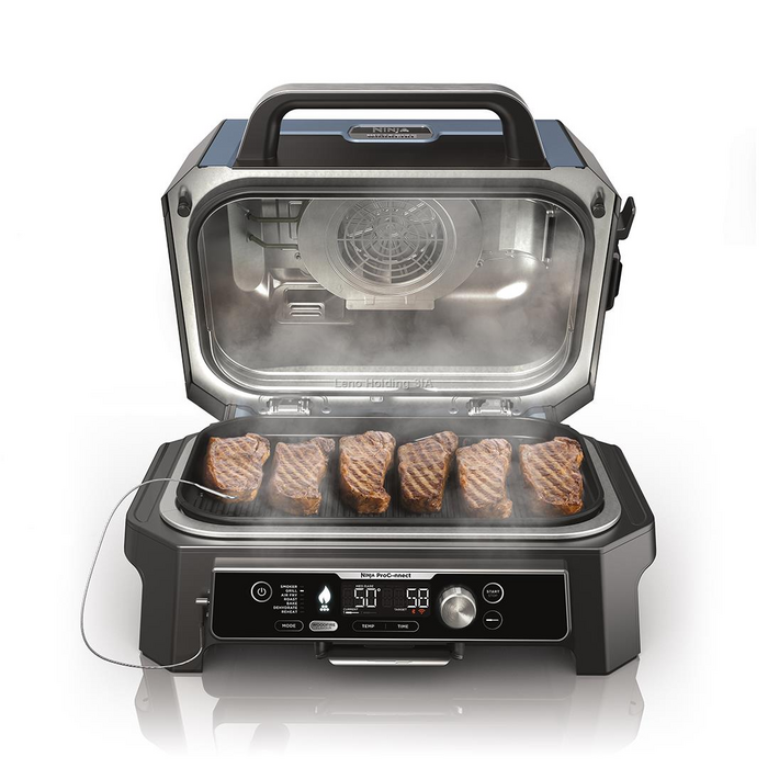 Nav jāmin vai jāstāv pie grila. Vienkārša ēdiena gatavošana bez raizēm. Šim viedajam BBQ grilam ir Wi-Fi un Bluetooth. Izmantojot lietotni Ninja Pro Connect, varat viegli ieprogrammēt savu ideālo gatavošanas līmeni, kontrolēt gatavošanas laiku un temperatūru, pārraudzīt ēdiena gatavošanas gaitu un saņemt reāllaika paziņojumus tieši no tālruņa, vienlaikus izbaudot laiku kopā ar draugiem un ģimeni.