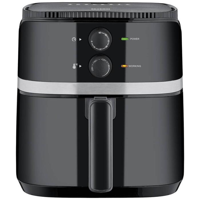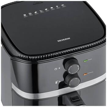 Рабочая камера емкостью 5 л идеально подходит для картофеля фри объемом до 800 г Регулируемая температура от 80 до 200°C Регулируемый таймер на 60 минут со звуковым сигналом Технические данные Тип товара: Аэрофритюрница Емкость: 5 л Макс. температура: 200°С Функции кухонной техники: Таймер Мощность: 1500 Вт Цвет: Черный/Серебристый Высота: 290 мм Длина: 334 мм Ширина: 270 мм Вес: 4,2 кг