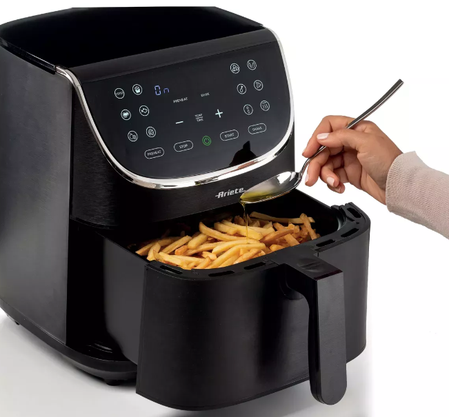 Много жареной пищи с использованием всего одной ложки масла, но без потери хрустящей корочки. С помощью аэрофритюрницы Airy Fryer 7L вы сможете обжаривать любые продукты в больших количествах, используя всего лишь ложку масла, делая жареную пищу одновременно полезной и вкусной. Используя большую корзину во фритюрнице Ariete's Airy Fryer 7L, вы сможете приготовить до 2,8 кг картофельной соломки за один прием! Не только картофельная соломка – также крокеты, рыбные, мясные и многие другие блюда в панировке, как замороженные и готовые к запеканию, так и свежие, только что обваленные в сухарях – это возможно с помощью двенадцати предустановленных программ.