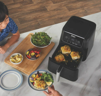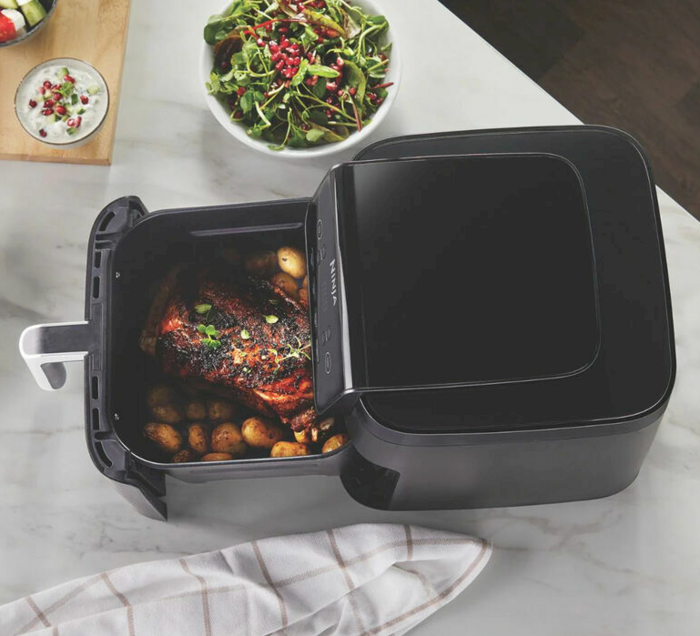 Ninja Air Fryer AF170EU функциональный аэрогриль для здорового и разнообразного приготовления. С вместительным ящиком 6,2 л он позволяет готовить блюда для всей семьи — от хрустящей картошки до сочного мяса. Благодаря мощности до 1750 Вт прибор работает быстро и эффективно, при этом расходует меньше энергии, чем традиционная духовка. Устройство предлагает 4 режима приготовления: Air Fry для жарки с минимальным количеством масла, Roast для запекания, Reheat для разогрева и Dehydrate для сушки продуктов. Регулируемая решётка (crisper plate) позволяет менять способ приготовления — от равномерного жарения до золотистой корочки. Большинство съёмных элементов пригодны для мытья в посудомоечной машине. Элегантный чёрный корпус прекрасно смотрится на кухонной столешнице. Технические характеристики: