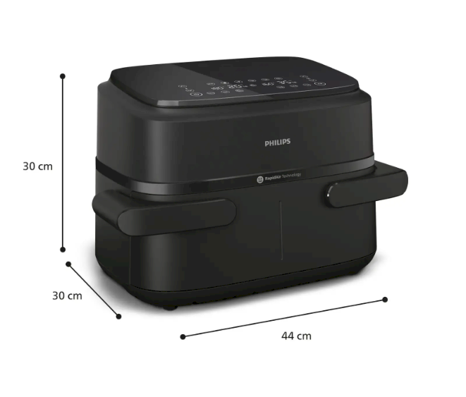Philips 1000 серия NA150/00 — это вместительный и мощный аэрогриль с объёмом корзины 7.1 литра и мощностью 2450 Вт, предназначенный для приготовления блюд с минимальным количеством масла. Технология горячего воздуха обеспечивает равномерное приготовление продуктов с хрустящей корочкой снаружи и сочной текстурой внутри. Устройство подходит для жарки, запекания, разогрева и приготовления различных блюд для всей семьи. Чёрный корпус придаёт аэрогрилю современный и универсальный внешний вид, который гармонично вписывается в интерьер кухни. Основные характеристики Гарантия продавца: 24 месяца