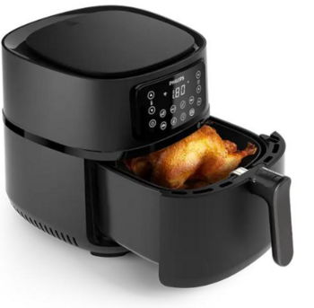 Подключаемая аэрофритюрница Philips 5000 серии XXL использует горячий воздух для приготовления ваших любимых блюд, делая их идеально хрустящими и используя до 90 % меньше жира**