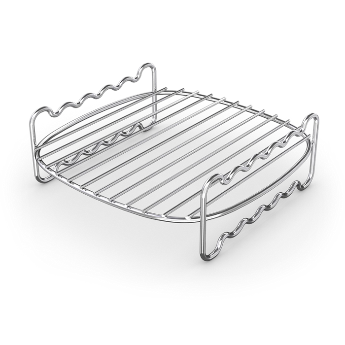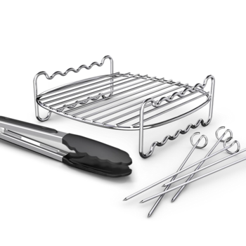 PRODUKTA APRAKSTS 2 līmeņu gatavošanas komplekts 6.2L; 8.3L, un 9L Airfryer ierīcēm Paplašini savas ēdiena gatavošanas iespējas Maksimāli izmanto sava Airfryer gatavošanas virsmu Pagatavo liesākus ēdienus Izzini visas sava mājokļa iespējas ar HomeID Ātra un viegla mazgāšana trauku mazgājamajā mašīnā GALVENIE PUNKTI Daudzveidība Paplašini savus kulinārijas apvāršņus, izmantojot statīva gatavošanai divos līmeņos piederumu komplektu. Šis daudzpusīgais ēdiena gatavošanas komplekts ļauj viegli un efektīvi pagatavot daudzveidīgu ēdienu klāstu. Statīvs gatavošanai divos līmeņos Izmantojot statīvu gatavošanai divos līmeņos, 5 iesmus un stangas, var viegli, ātri un veselīgi grilēt vai cept garšīgus burgerus, vistu spārniņus, zivis un daudz ko citu. Ērti izņemt ēdienu, izmantojot viegli satveramās stangas ar silikona uzgaļiem. Pagatavo liesākus ēdienus Izmēģini jaunas ēdiena gatavošanas iespējas, izmantojot statīvu gatavošanai divos līmeņos, lai pagatavotu visu maltīti vienā piegājienā. Pagatavo ēdienu, piemēram, burgerus. Augšējais līmenis ir pietiekami liels, lai uz tā varētu novietot burgeru maizīti vai piedevas, savukārt apakšējais līmenis ir lieliski piemērots pašiem burgeriem un daudz kam citam. Lietotne HomeID Gūsti iedvesmu ēdiena un kafijas pagatavošan ar vairāk nekā 500 receptēm un padomiem. Mazgājams trauku mazgājamajā mašīnā Visas komplekta daļas var droši mazgāt trauku mazgājamajā mašīnā, tāpēc tīrīšana ir vienkārša un ērta. SPECIFIKĀCIJA Produkta saderība Saderīgs ar: HD9650, HD9651, HD9653, HD9654, HD9760, HD9765, HD9860, HD9861, HD9863, HD9867, NA130, NA230, NA231, NA330, NA331, NA332, NA350, NA351, NA352, NA353, HD9270, HD9280, HD9875, HD9876, HD9880. Piederumi Komplektā: Statīvs gatavošanai divos līmeņos, 5 iesmi, Viegli satveramas stangas ar silikona uzgaļiem Svars un Izmēri Iepakojuma izmēri (G x P x A): 204 x 204 x 80 mm Produkta izmēri (G x P x A): 200 x 197 x 68 mm Produkta svars: 0,343 kg