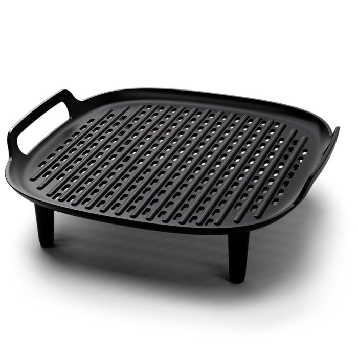 Grila plātne (piederumi) Viegla tīrīšana un glabāšana 6 iesmi, lai pagatavotu grilētas maltītes Ikdienas iedvesma jaunām receptēm Gatavošana divos līmeņos PRODUKTA APRAKSTS Grila plātne (piederumi) Baudi nevainojami grilētas zivis, gaļu un dārzeņus, ko nodrošina grila plātne un tās unikālā caurumotā un reljefā virsma. Viegla tīrīšana un glabāšana Vari droši ievietot Airfryer grila plātni un iesmus trauku mazgāšanas mašīnā, padarot to atkārtotu lietošanu vēl vienkāršāku 6 iesmi Izmanto šos iesmus, lai pagatavotu dārzeņu vai gaļas šašlikus. Ikdienas iedvesma recepšu izmēģināšanai Paplašini gatavošanas iespējas un iedvesmojies no Philips HomeID receptēm, kuras sastādījuši profesionāli pavāri un vairāki miljoni lietotāju. Jo biežāk izmantosi lietotni HomeID, jo vairāk tā pielāgosies tavām interesēm Gatavošana divos līmeņos Grila piederumu var izmantot kā otro līmeni, lai palielinātu pagatavojamo produktu apjomu. Vienkārši novieto burgermaizītes, dārzeņus, vistas stilbiņus un citus gardumus virs un zem grila plātnes, lai maksimāli izmantotu Airfryer gatavošanas vietu. SPECIFIKĀCIJAS Vispārējas specifikācijas Mazgājams trauku mazgājamā mašīnā Gatavošanas metode: Grilēšana Nepiedegošs pārklājums Produkta saderība Saderīgs ar: HD9285, HD9630, HD9750, HD9650, HD9651, HD9652, HD9653, HD9654, HD9762, HD9765, HD9860, HD9861, HD9863, HD9867, HD9870 Komplektā iekļauti piederumi 6 iesmi:Jā Grila piederums Svars un izmēri Iepakojuma izmēri (GxPxA): 215 x 215 x 80 mm Produkta svars: 0,3 kg Produkta izmēri (GxPxA): 215 x 215 x 80 mm