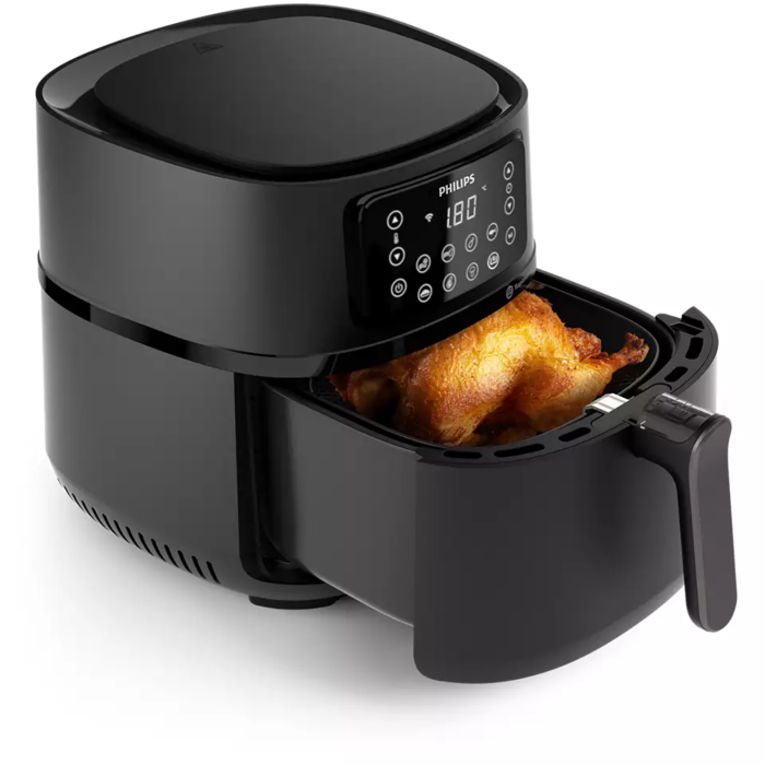 PRODUKTA APRAKSTS Tavs savienojamais veselīgu ēdienu gatavošanas palīgs Daudzpusīga darbība ar dažādām funkcijām vienā Airfryer ierīcē Garšīgas Airfryer receptes veselīgai dzīvei Izvēlies, iestati un atpūties Veselīga apcepšana ar Rapid Air tehnoloģiju Baudiet garšīgu ēdienu ar līdz 90% mazāk tauku! XXL izmērs. Visai ģimenei Enerģijas un laika ekonomija Vienkārša izmantošana un tīrīšana PAPILDINFORMĀCIJA Savienojamais gatavošanas palīgs Intuitīvā HomeID lietotne nemanāmi izveido savienojumu ar Airfryer, tādēļ tā ir ļoti noderīga ēdiena gatavošanas lakā. Vari ne vien gatavot veselīgi, bet arī atklāt interesantus un gardus jaunus ēdienu un pat uzraudzīt ēdiena gatavošanu attālināti, no lietotnes. Izvēlies, iestati un atpūties Izvēlies recepti, nosūti to uz Airfryer ierīci un, sēžot dīvānā, uzraugi ēdiena gatavošanas gaitu! HomeID lietotne palīdzēs katrā solī, lai ik dienas mājās gatavotu gardas maltītes visai ģimenei. Ir iespējota arī ar Amazon Alexa saderīga balss vadība. XXL izmērs. Visai ģimenei Savienojamais Philips Airfryer 5000. sērijas XXL ir izstrādāts ģimenes vajadzībām. 1,2 kg ietilpīgs grozs kopā ar 6,2 l pannu palīdz pagatavot dažādas maltītes. Gatavojiet līdz sešām porcijām vienā reizē savai ģimenei un draugiem. Gatavošanas funkcijas “16 vienā” Jaunajai Philips Airfryer 5000. sērijas XXL savienojamai ierīcei ir 16 dažādas gatavošanas funkcijas:fritēšana, cepšana, grilēšana, grauzdēšana, žāvēšana, maizes grauzdēšana, atkausēšana, uzsildīšana, raudzēšana un daudz kas cits. Rapid Airtehnoloģija Rapid Air Technology ar unikālo jūraszvaigznes dizainu izmanto karstu gaisu, lai gatavotu gardus pārtikas produktus, kas ir kraukšķīgi no ārpuses un mīksti iekšpusē, ar nelielu daudzumu eļļas vai bez tās. Enerģijas un laika ekonomija Philips Airfryer ierīces darbojas efektīvāk, lai taupītu laiku un enerģiju, pagatavojot gardas maltītes ar 60% mazāku enerģijas patēriņu, kā arī 40% ātrāk par ierasto cepeškrāsni. Garšīgas Airfryer receptes Atklāj simtiem lielisku, gardu, ātri pagatavojumu un veselīgu Airfryer recepšu. HomeID receptes ir sagatavojuši uztura speciālisti, atvieglojot labas maltītes izvēli katrai dienai. Gaiss ir jaunais eļļas aizstājējs Savienojamais Philips Airfryer 5000. sērija XXL izmanto karstu gaisu, lai pagatavotu iecienītākos pārtikas produktus, padarot tos ideāli kraukšķīgus un izmantojot līdz 90% mazāk tauku Vienkārša izmantošana un tīrīšana Visas noņemamās daļas var mazgāt trauku mazgājamā mašīnā. Mūsu Airfryer QuickClean grozam ir nelipīgs pārklājums vieglai tīrīšanai. Cepšana ar gaisu nozīmē arī to, ka jūsu mājas būs brīvas no tradicionālās dziļās taukvāres radītās smaržas. SPECIFIKĀCIJA Gatavošanas funkcijas Liela gaisa plūsma: Fritēšana, Apcepšana, Grilēšana, Cepšana, Gatavošana vienā traukā, Cepšana uz lielas uguns, Ātra apcepšana, Saldētu produktu gatavošana, Uzsildīšana, Atkausēšana, Siltuma saglabāšana, Žāvēšana, Grauzdēšana, Sautēšana, Raudzēšana, Konservēšana Kapacitāte Porcijas: Ietilpība: 1.4kg Vispārējas specifikācijas Vispārējas specifikācijas Produkta funkcijas: Wi-Fi savienojums, Rapid Air tehnoloģija, Tauku noņemšana, Lietotne HomeID, Siltuma saglabāšana Mazgājams trauku mazg. mašīnā:Jā QuickClean:Jā Automātiskā izslēgšanās:Jā Nepiedegošs pārklājums:Jā Iepriekš iestatīta gatavošanas funkcija:Jā Ieslēgts indikators:Jā Temperatūras vadība: 40–200 °C BPA nesaturošs iekšējais pārklājums:Jā Laika vadība: Līdz 60 minūtēm Tehniskā specifikācija Strāvas padeve: 2000W Frekvence: 50Hz Vada garums: 0.8m Spriegums: 220 - 240V Гарантия продавца: 24 месяца