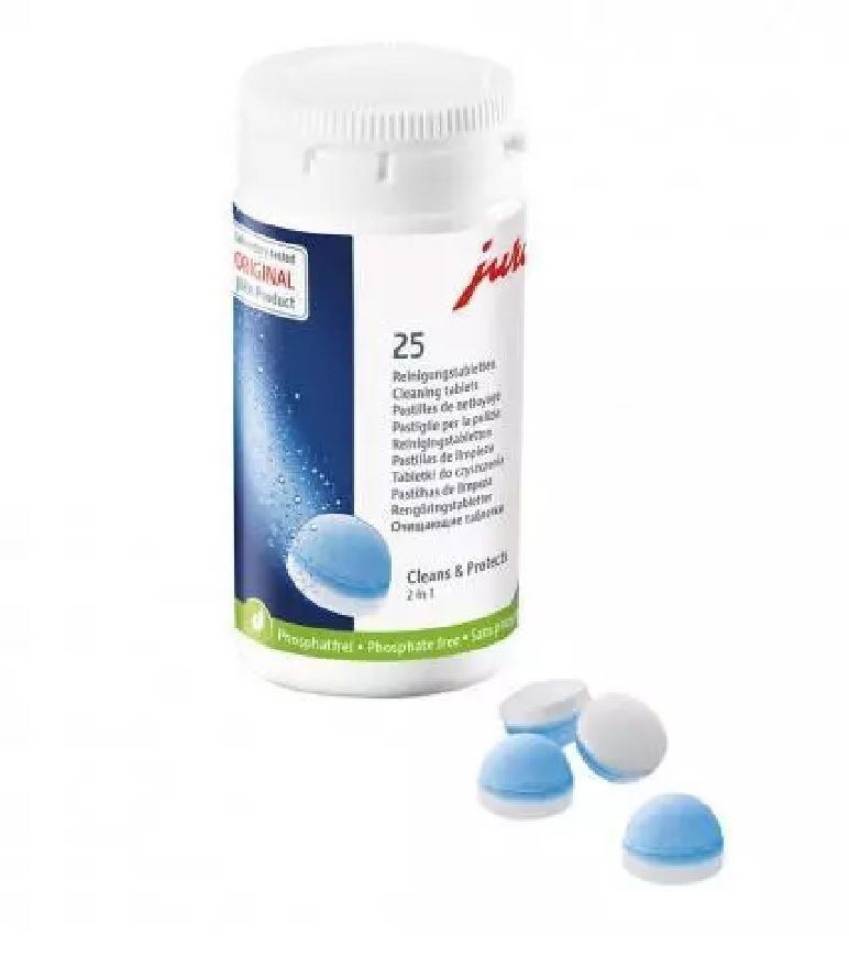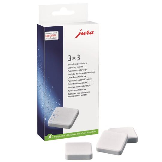 • JURA atkaļķošanas tabletes pagarinās jūsu kafijas automāta kalpošanas mūžu • Tās notīrīs kaļķakmens aplikumu, tajā pat laikā būs saudzīgas pret kafijas automāta daļām