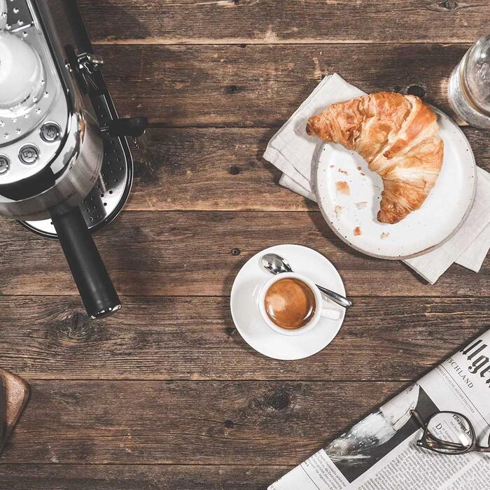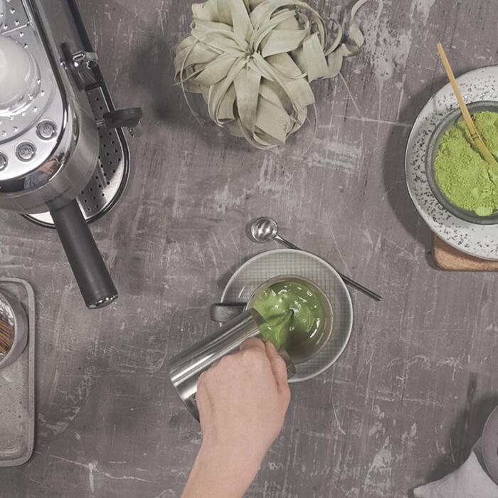 Ширина всего 15 см, время нагрева — 40 секунд. Разнообразные варианты приготовления кофе Готовит эспрессо, капучино, латте макиато и многое другое. Функции молока и горячей воды Насадка для вспенивания молока для получения кремообразного молока и латте, а также горячей воды для чая или кофе американо. Эффективное заваривание Система термоблока, функция предварительного заваривания и давление насоса 19 бар. Профессиональный портафильтр Совместим с 1 или 2 чашками и E.S.E. подушечки. Прочная конструкция Корпус из матовой нержавеющей стали с хромированными элементами. Удобные функции Подставка для подогрева чашек, подсвеченная панель управления, энергосберегающее автоматическое отключение и дисплей для удаления накипи. Практичные аксессуары Съемный резервуар для воды объемом 1,5 л, поддон для сбора капель с индикатором воды, а также фильтры для стерильной воды и накипи.