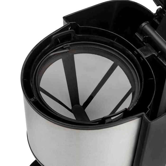 Емкость 1,5 л Постоянный фильтр Мерная ложка Антипригарная нагревательная пластина Система защиты от капель Стеклянный графин с крышкой Градуированный резервуар для воды Выключатель рабочего освещения Соответствует нормам энергосбережения ERP Автоматическое отключение Напряжение 230 В Мощность 800 Вт