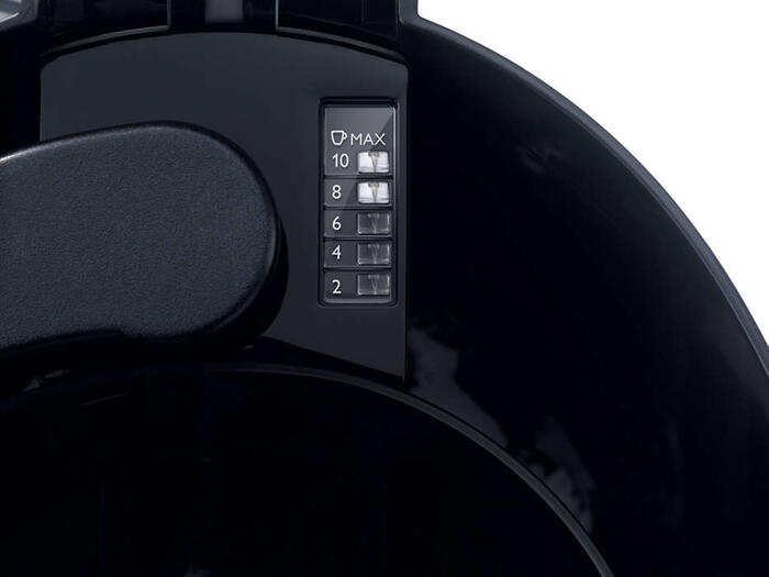Izbaudiet svaigi pagatavotas kafijas garšu un aromātu ar uzticamo Philips kafijas aparātu. Pateicoties aromāta maisītājam, kafija katru reizi garšos nepārspējami. Izmantojiet taimeri un katru rītu mostieties ar svaigas kafijas smaržu. VISPĀRĪGA INFORMĀCIJA Fantastiska garša un aromāts • Aromāta maisītājs cirkulē kafiju optimālai garšai Radīts tieši jums • 1,2 l ietilpība, 2-15 tasēm Viegli izmantojams • Pilienapture, lai ielietu kafijas krūzi jebkurā brīdī • Automātiska izslēgšanās pēc 30 min enerģijas taupīšanai un drošībai • Trauku mazgājamajā mašīnā mazgājamas detaļas vienkāršai tīrīšanai • Pamostieties ar svaigas kafijas smaržu • Viedais ūdens līmeņa indikators vieglai uzpildīšanai IZCELTIE PRODUKTI Automātiska izslēgšanās (30 min) 30 minūtes pēc kafijas pagatavošanas kafijas automāts automātiski izslēdzas, lai taupītu elektroenerģiju un saglabātu drošību. Šī funkcija atbilst ES direktīvai, kas attiecas uz visiem kafijas automātiem ES. Ja vēlaties, lai jūsu kafija ilgāk saglabājas karsta, Philips piedāvā kafijas automātus ar termisko krūzi. Pilienapture Pilienapture sniedz iespēju ieliet krūzi kafijas jebkurā brīdī pirms gatavošanas cikla pabeigšanas. Aromāta maisītājs Šī viedā sprausla krūzē vienmērīgi cirkulē ieplūstošo kafiju optimālam un nemainīgam aromātam, no pirmās līdz pēdējai krūzītei. Var mazgāt trauku mazgājamā mašīnā Stikla krūze un filtra turētājs ir viegli mazgājami trauku mašīnā. Taimeris Pamostieties ar svaigas kafijas smaržu, pateicoties taimerim. Sagatavojiet kafijas aparātu, iestatiet laiku, un svaigas kafijas krūze tiek pagatavota tieši vēlamajā laikā. Viedais ūdens līmeņa indikators Šis viedais ūdens līmeņa indikators ir integrēts ūdens tvertnē, tādēļ ir viegli izsekot, cik daudz tasītēm ir iepildīts ūdens. 1,2 litru ietilpība Šis kafijas aparāts var pagatavot 2 līdz 15 kafijas tases (līdz 1,2 litriem). Tomēr šim kafijas aparātam ir kompakta konstrukcija, un tas virtuvē neaizņem daudz vietas. SPECIFIKĀCIJAS Piederumi • Iekļauts: Stikla krūze Noturība • Energoefektīva gatavošana: 1000 W Svars un izmēri • Izstrādājuma izmēri (PxAxG): 210 x 240 x 320 mm • Iepakojuma izmēri (PxDzxA): 299 260 x 380 mm Vispārējas specifikācijas • Īpašas funkcijas: AromaSwirl • Displeja tips: LCD • Kafijas dzērieni: Pilienu filtra kafija • Piemērots: Maltas kafijas pulveris • Vienkārša lietošana un komforts: Displejs, Ūdens līmeņa indikators, Automātiskā izslēgšanās, Pilienapture, Taimeris • Viegla tīrīšana un apkope: Noņemams filtra turētājs, Var mazgāt trauku mazgājamā mašīnā Apdare • Ūdens tvertnes materiāls: Plastmasa • Galvenā korpusa materiāls: Nerūsējošais tērauds un plastmasa Serviss • 2 gadu garantija Dizains • Krāsa: Melna metāla Tehniskā specifikācija • Ūdens tvertnes ietilpība: Līdz pat 15 krūzītes • Krūzes pagatavošanas laiks: 10 min • Ūdens tvertnes ietilpība: 1,2 l • Vada garums: 0,85 m • Spriegums: 220-240 V Izcelsmes valsts • Ražots: Ķīna Гарантия продавца: 24 месяца