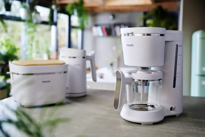 Izbaudi kafijas lielisko garšu un aromātu ik rītu — eleganti un nevainojami. Ilgtspējīgi izstrādāts, izmantojot 100% bioplastmasu un energoefektīvas funkcijas, kas ļauj spert nelielu, taču nozīmīgu soli ceļā uz zaļāku nākotni. VISPĀRĪGĀ INFORMĀCIJA Radīts, lai atstātu iespaidu • Moderns un minimālistisks stils • Tīrs un vienkāršs dizains Radīts, lai dotu ieguldījumu • Ilgtspējīgs dizains videi nekaitīgākai nākotnei • Izstrādāts, ņemot vērā drošību un ilgtspējīgumu Radīts, lai darbotos • Aromāta maisītājs, lai nodrošinātu lielisku garšu un bagātīgu aromātu • Līdz 15 tasēm kafijas • Ietaupiet enerģiju, iestādot ātru pagatavošanas laiku un automātisko izslēgšanu • Pilēšanas apturēšanas funkcija, lai novērstu kafijas izšļakstīšanos • Viegli saskatāms ūdens līmeņa indikators IZCELTIE PRODUKTI Izbaudiet fantastisku garšu un aromātu Viedā sprausla visā krūzē vienmērīgi cirkulē ieplūstošo kafiju optimālam un nemainīgam aromātam, no pirmās līdz pēdējai krūzītei. Energoefektīvs Automātiskās izslēgšanas funkcija izslēdz ierīci pēc 30 minūtēm, lai palīdzētu taupīt enerģiju un nodrošinātu papildu drošību. Pilna krūze tiek pagatavota 10 minūtēs, lai vēl vairāk taupītu enerģiju. Pārstrādājams un izturīgs Ilgtspējīgi izstrādāts, izmantojot 100% bioplastmasas lai samazinātu tā CO2 emisijas par 24%. Šis revolucionārais materiāls noteikti atstās iespaidu Tavā virtuvē, vienlaikus atbalstot pozitīvākas sekas videi. Liela 1,2 l ietilpība Šis kafijas automāts var pagatavot no 2 tasēm līdz 10 lielām vai 15 mazām tasēm kafijas ar maksimālo ietilpību 1,2 litri. Pat ar savu lielo ietilpību tā kompaktais dizains aizņem minimālu vietu uz Tavas virtuves virsmas. Pilienapture Pilēšanas apturēšanas funkcija sniedz iespēju ieliet krūzi kafijas pirms gatavošanas cikla pabeigšanas, novēršot kafijas izšļakstīšanos. Ārējais ūdens līmeņa indikators Viegli nolasāms ūdens līmeņa indikators ļauj piepildīt ūdens tvertni līdz vēlamajam līmenim, nodrošinot, ka lieki netērē enerģiju un pagatavo tikai nepieciešamo kafijas daudzumu. Drošs un ilgtspējīgs 100% bioplastmasas tiek izgatavoti no bioloģiskiem un atjaunojamiem resursiem, piemēram, saulespuķu eļļas. Izmantotā eļļa, kas paliek pāri pēc ēdiena gatavošanas, un citi augu atkritumi tiek savākti un pārstrādāti videi draudzīgā veidā, lai tā būtu piemērota saskarei ar pārtiku. Automātiskās izslēgšanas funkcija ierīci izslēdz pēc 30 minūtēm, tādējādi ietaupot enerģiju un padarot ierīci vēl drošāku. Moderns un minimālistisks Ilgtspējība nekad nav izskatījusies stilīgāka — ar zīda balti matētu apdari, lai satriecoši izskatītos Tavā virtuvē. Tīrs un vienkāršs No dabas iedvesmots dizains, mierīgas krāsas un dabīgi materiāli. Lai atvieglotu atkārtotu uzpildīšanu un tīrīšanu, iekļauts noņemams vāks. Kolekcijai Philips Eco Conscious 2022. gadā ir piešķirta IF dizaina un Red Dot balva. SPECIFIKĀCIJAS Vispārējas specifikācijas • Produkta funkcijas: Izbaudiet fantastisku garšu un aromātu, Lielas ietilpības ierīce, Iekļauts pilēšanas apturētājs, Automātiskās izslēgšanās funkcija, Ārējais ūdens līmeņa indikators, Ilgtspējīga konstrukcija, Droša un ilgtspējīga, Moderns un minimālistisks, Tīrs un vienkāršs Izcelsmes valsts • Ražots: Ķīna Tehniskā specifikācija • Vada garums: 0,8 m • Jauda: 1000 W Svars un izmēri • Produkta izmēri (GxPxA): 340 x 170 x 350 mm • Produkta svars: 2,050 kg • Svars (ieskaitot iesaiņojumu): 3,060 kg Dizains un apstrāde • Galvenā korpusa materiāls: 100% bioplastmasa • Krāsa: Zīda balti matēts