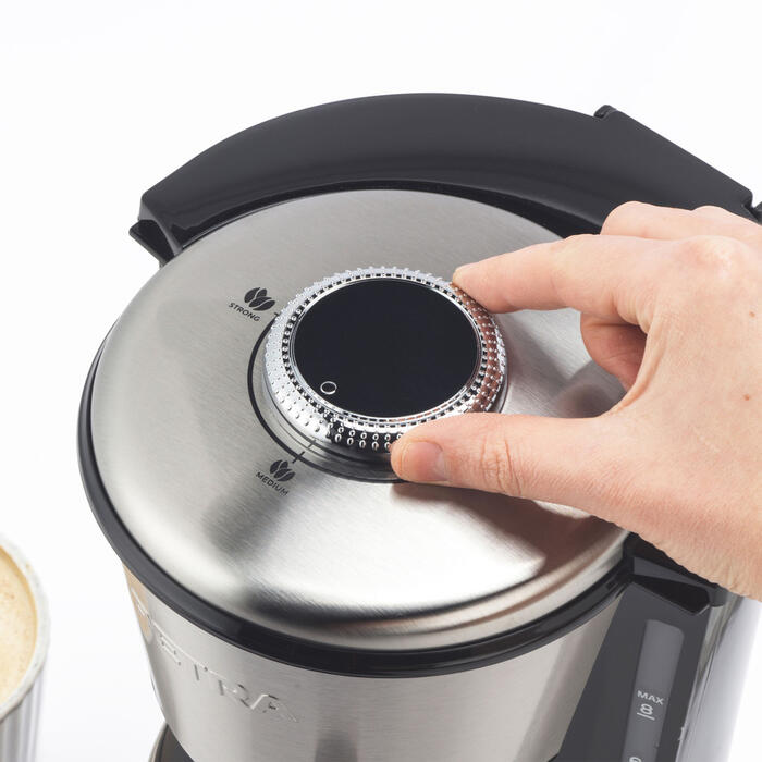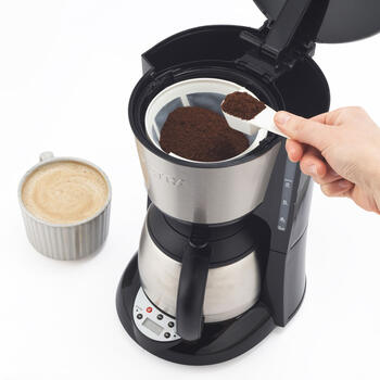 В комплект входит мерная ложка: подходит для молотого кофе, в комплект входит кофейная ложка. Настройте кофе: благодаря встроенному таймеру и контролю крепости вы можете регулировать крепость кофе. Простое программирование: мощность 800 Вт и цифровой дисплей. Безопасность и комфорт: Автоматическое отключение и защита от перегрева.