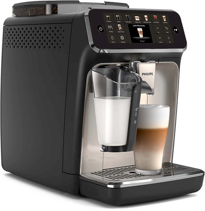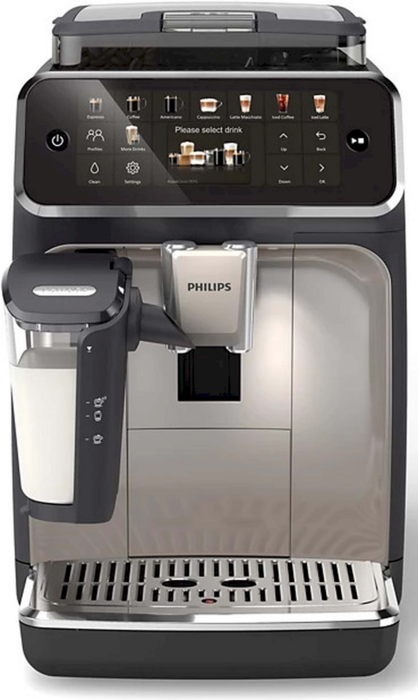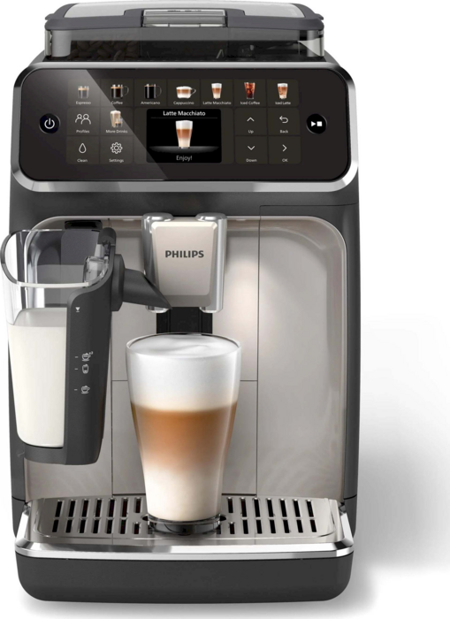 Philips 5500 Series EP5547 — полностью автоматическая кофемашина для приготовления эспрессо и других кофейных напитков одним нажатием. Оснащена встроенной кофемолкой с керамическими жерновами и системой автоматического вспенивания молока LatteGo, которая позволяет готовить капучино, латте макиато и другие напитки с молочной пеной. Предусмотрена настройка крепости, температуры и объёма напитка по индивидуальным предпочтениям. Управление осуществляется через интуитивный TFT‑дисплей. Характеристики Гарантия продавца: 24 месяца