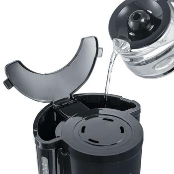Емкость / Содержание: до 8 чашек Выход: прибл. 1000 Вт Вакуумный кувшин из нержавеющей стали с капельной крышкой и удобной работой одной рукой для длительного сохранения тепла Работает быстро и тихо Откидной фильтр со съемным входом для фильтра 1 x 4 Капельный запорный клапан для безопасного извлечения кувшина даже во время варки Индикатор уровня воды, обе стороны, хорошая видимость Просты в эксплуатации Выключатель с контрольной лампой Автоматическое выключение Встроенный кабельный отсек