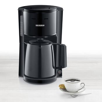 Термокувшин обеспечивает более длительное сохранение тепла и удовольствие от кофе в течение многих часов. Мощный нагревательный элемент мощностью 1000 Вт для горячего и крепкого кофе Капельная крышка для удобства использования Легко наливается, не капает Технические данные Мощность: 1000 Вт Вместимость: около 8 чашек Цвет: черный Термокувшин с капельной крышкой для более длительного сохранения тепла Встроенный кабельный отсек для удобного хранения кабеля Поворотный фильтр 1 х 4 с каплеулавливающим клапаном Индикатор уровня воды, хорошо виден Переключатель вкл/выкл с контрольным светом Автоматическое выключение