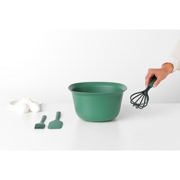 Brabantia Tasty+ Šis gudrais komplekts sastāv no 3,2 l maisīšanas trauka, putotāja un notecināšanas karotes, cepamās lāpstiņas un skrāpja un konditorejas otiņas. Cepšana ir kūka! PRODUKTA APRAKSTS Pilns cepšanai paredzētais komplekts ar maisīšanas bļodu, putotāju un notecināšanas karoti, cepamo lāpstiņu, skrāpi un konditorejas otu. Ērts – ergonomisks dizains. Viegli tīrāms - mazgājams trauku mazgājamā mašīnā. Ietilpīga - L tilpuma maisīšanas bļoda (3,2L). Neslīd – maisīšanas trauks ar neslīdošu pamatni. Laba saķere, bez izšļakstīšanās - ergonomisks maisītāja trauka izliešanas loks. Vietas taupītājs - atvērtas formas putojam ir nepieciešams mazāk vietas uzglabāšanai. Flippin' ekonomisks - lāpstiņa un skrāpis vienā. Konditorejas otiņa Silikona lāpstiņa un skrāpis vienā. Universāls - maisīšanas trauks ar karstumizturīgu pārklājumu (līdz 100ºC/212ºF). Karstumizturīgs - max 220°C/448°F (putotājs un lāpstiņa), max 280°C/536°F (otiņa). Lietošana bez problēmām - 5 gadu garantija un serviss SPECIFIKĀCIJAS Materiāls: Plastika Ražots: Beļģija Drošs mazgāšanai trauku mazgājamā mašīnā Svars: 0.4kg Гарантия продавца: 24 месяца