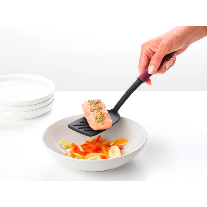 Olas, burgeri, grilēti baklažāni... apgrieziet tos un pasniedziet ar šo Brabantia Tasty+ lāpstiņu. Šai izturīgajai lāpstiņai ir spraugas, caur kurām tauki var viegli iztecēt. Un tas ir izgatavots no elastīga neilona, tāpēc tā ir droša jūsu nepiedegošajiem virtuves traukiem. PRODUKTA APRAKSTS Ērts – ergonomisks dizains. Veselīgāk – ar speciālām spraugām lieko tauku novadīšanai. Viegli uzglabājams - pakarināmā cilpa. Nesaskrāpē – izgatavots no elastīga neilona, ideāli piemērots nepiedegošajiem virtuves traukiem. Viegli tīrāms - mazgājams trauku mazgājamā mašīnā. Karstumizturīgs - max 220°C/448°F. Lietošana bez problēmām - 5 gadu garantija un serviss. Ilgtspējīgāka izvēle – 100% pārstrādājama pēc lietošanas. Daļa no Brabantia Tasty+ krāsu kolekcijas. SPECIFIKĀCIJAS Nepiedegošs materiāls 5 gadu Brabantia garantija Materiāls: Plastika Drošs mazgāšanai trauku mazgājamā mašīnā Svars: 48g Izmēri: 29.3cm x 3.5cm x 7.2cm Гарантия продавца: 24 месяца