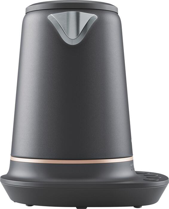 Tehniskā specifikācija Pamatkrāsa: melna perlamutra Akcenta krāsa: varš Jauda, W: 2400 Strāvas vada garums, m: 0.75 Temperatūras kontrole: bimetāla Temperatūras iestatījumi: 40-100°C Krūzes tilpums, l: 1.7 Bruto svars, kg: 1.73 Neto svars, kg: 1.32