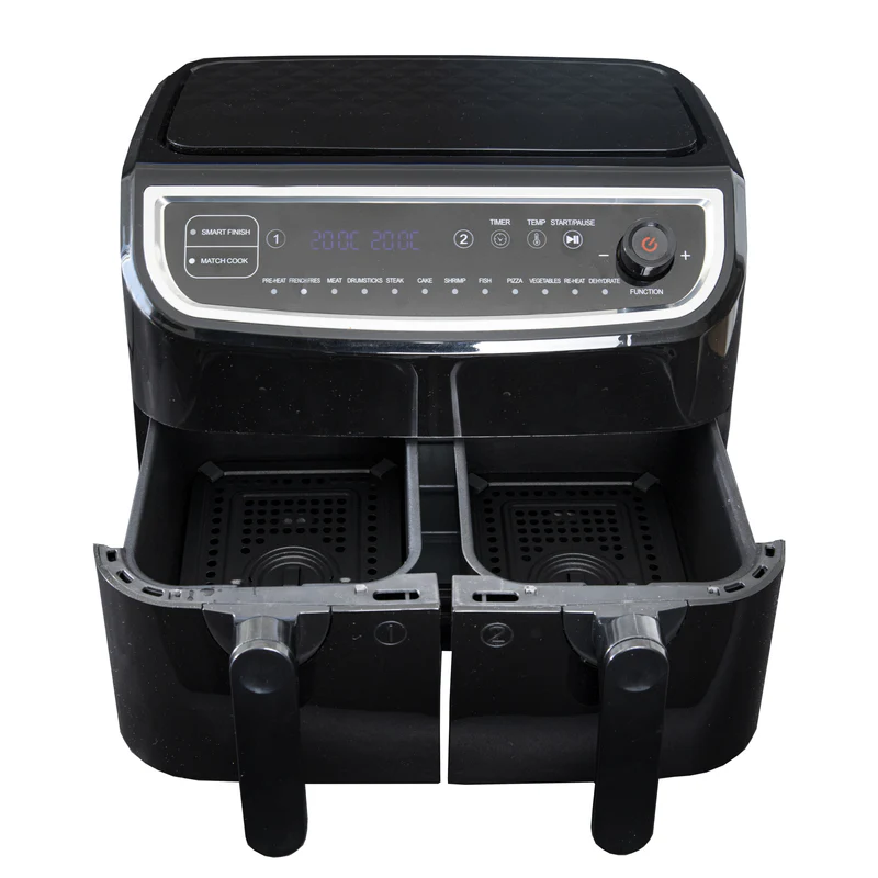 Gastronoma dubultajai ceptuvei ar zemu tauku saturu ir gaisa cirkulācijas sistēma, kas ēdienu gatavo ātrāk un ietaupa elektrību. Jūs varat gatavot bez eļļas un tādējādi sasniegt par 80% mazāk tauku, salīdzinot ar cepšanu. Tā ietilpība ir 9 litri - 2 nepiedegoši gatavošanas grozi, katrs ar ietilpību 4,5 litri. Grozus var izmantot atsevišķi un ar dažādām temperatūrām un gatavošanas laikiem - lieliski, ka dārzeņus nav nepieciešams pagatavot kopā ar gaļu. Izmantojot Smart Finish programmu, jūs varat iestatīt katru grozu tā, lai ēdiena gatavošana tiktu pabeigta vienlaicīgi. Izmantojot programmu Match Cook, preparāts abiem katliem tiek iestatīts vienādi. Abi grozi ir trauku mazgājamās mašīnas droši. Ir digitālais displejs ar skārienekrānu un 12 automātiskām programmām. Temperatūru var iestatīt uz 50-200 ° C, un taimeris ļauj iestatīt no 1-60 minūtēm. PRODUKTA APRAKSTS KOMPLEKTĀCIJĀ Гарантия продавца: 24 месяца