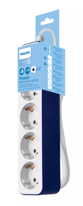 PHILIPS pagarinātājs, 4 ligzdas, balts ar zilu (CHP2145U/58)Добавить в корзину€ 10.40